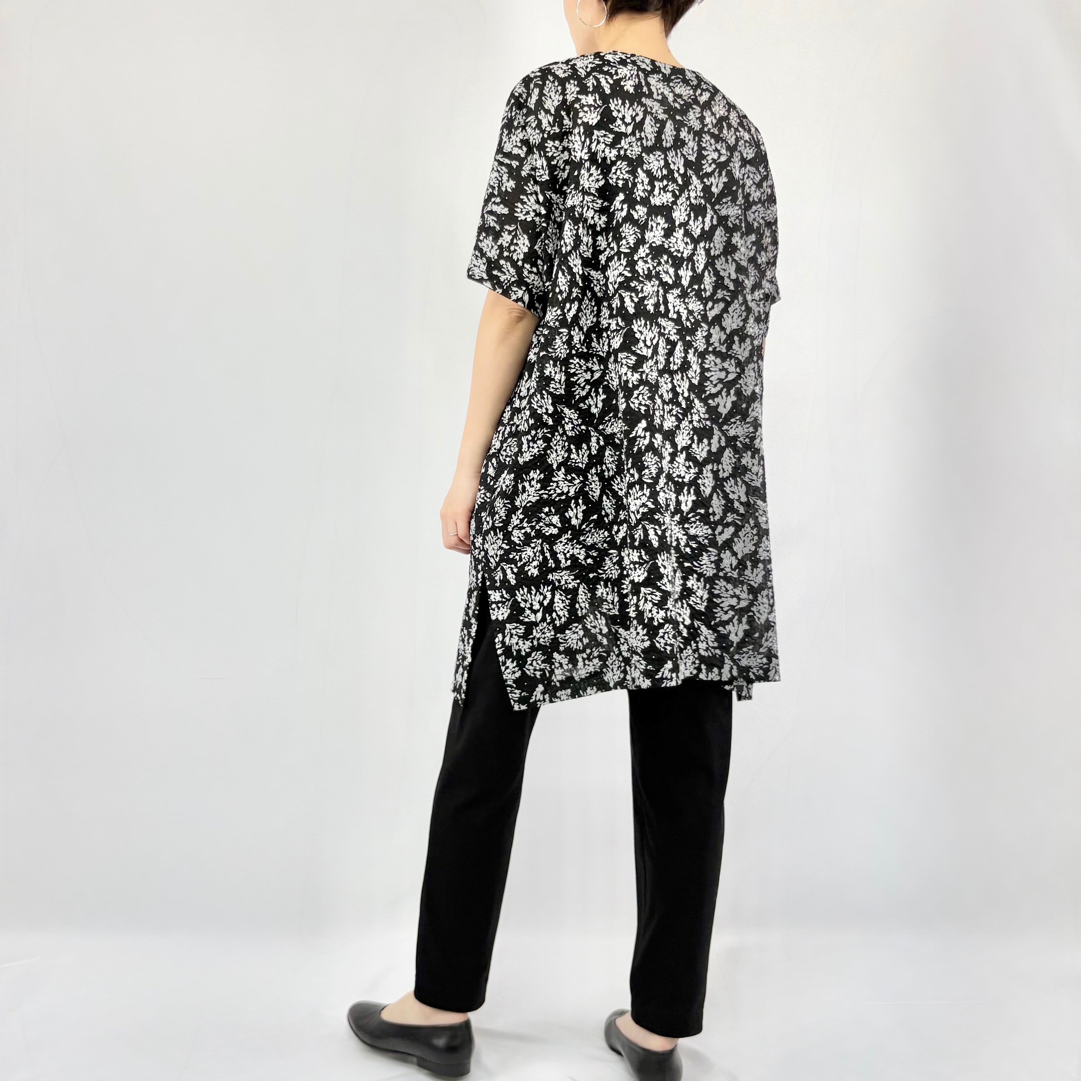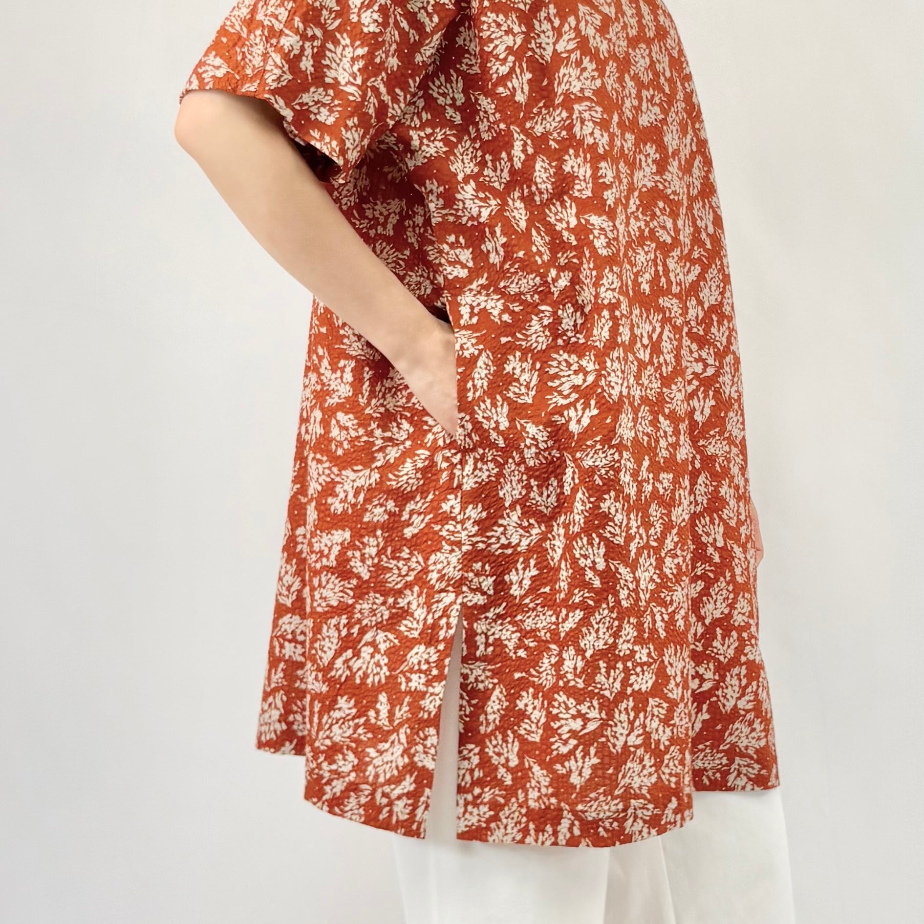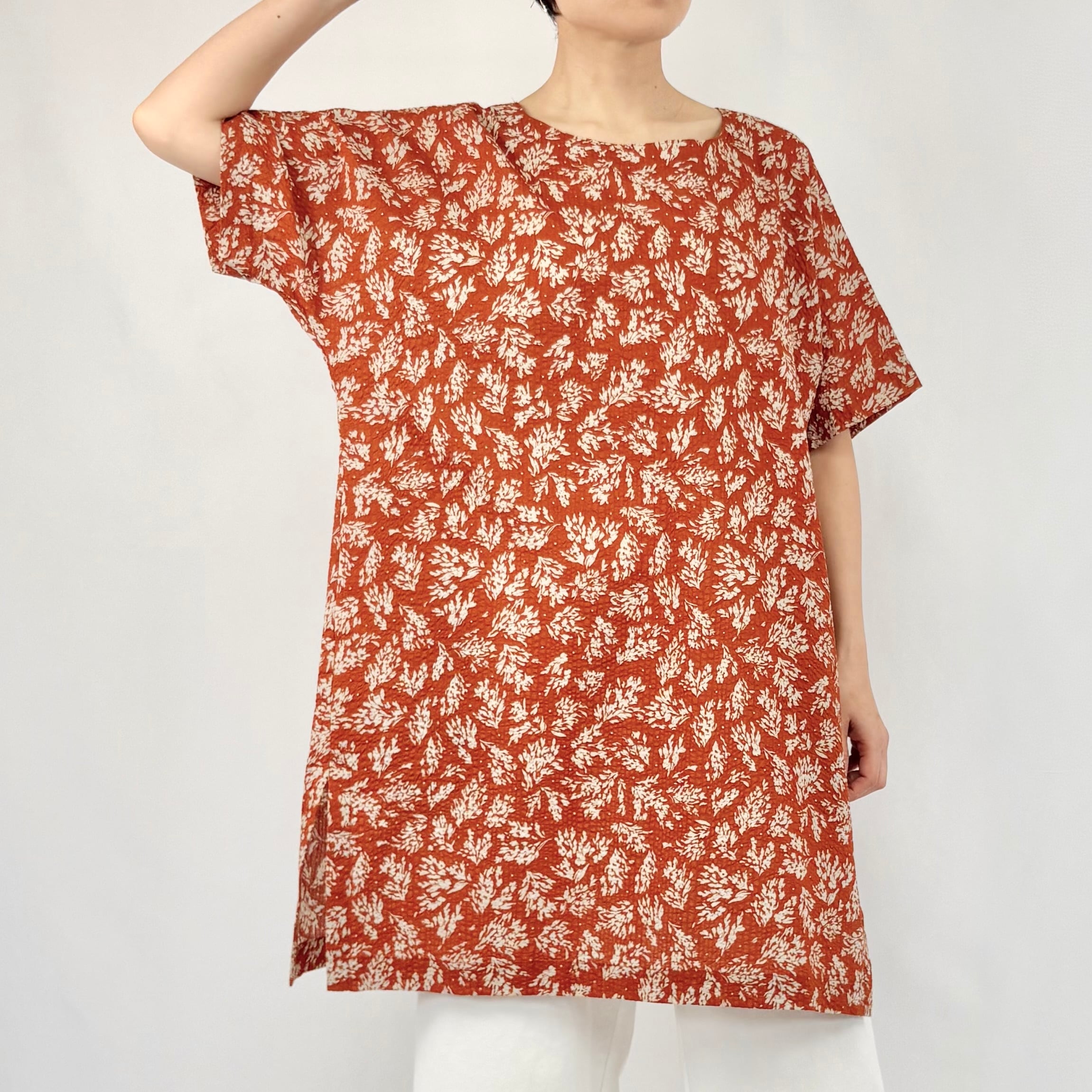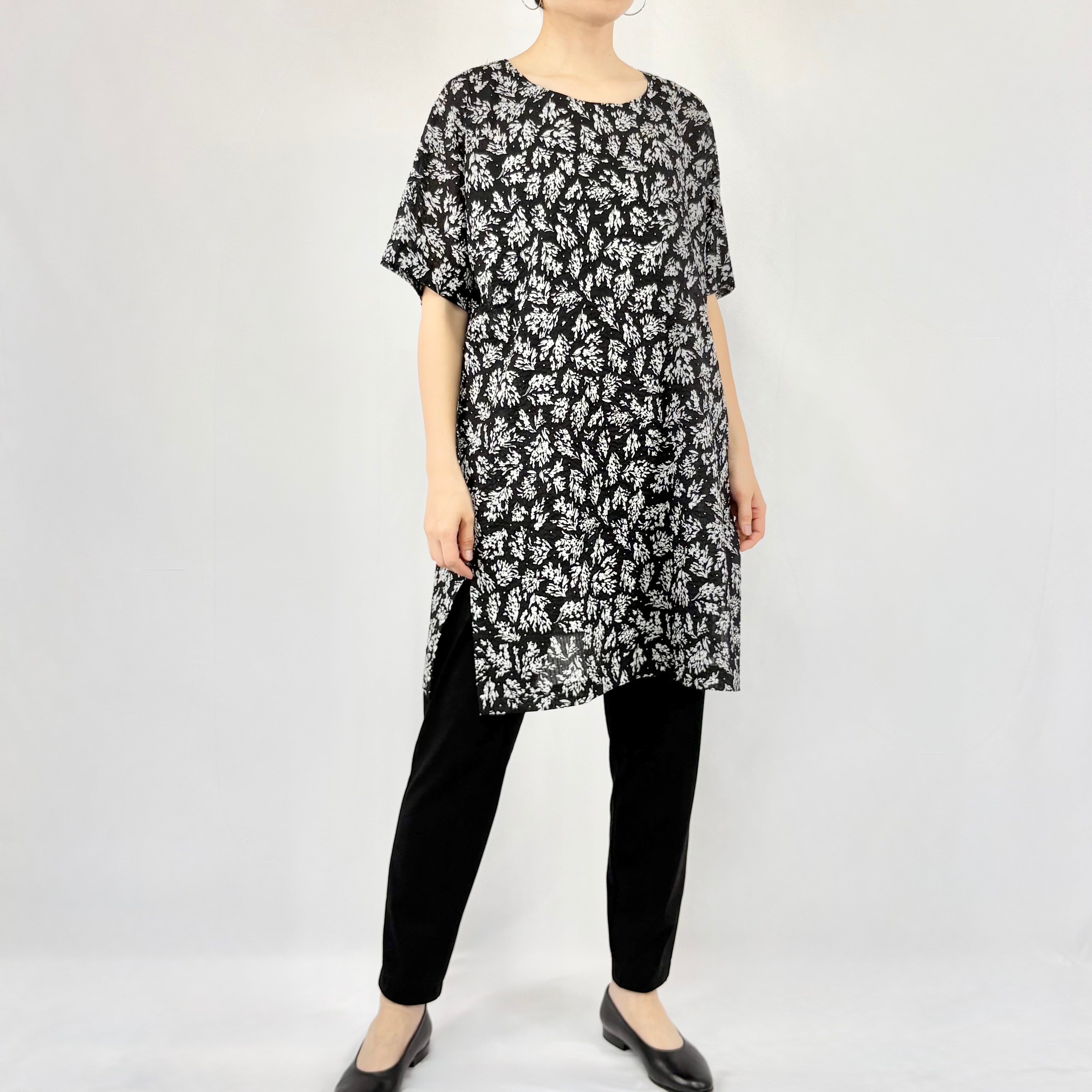 ミラクラワッシャー:風草プリント クルーネック半袖ドルマンチュニック