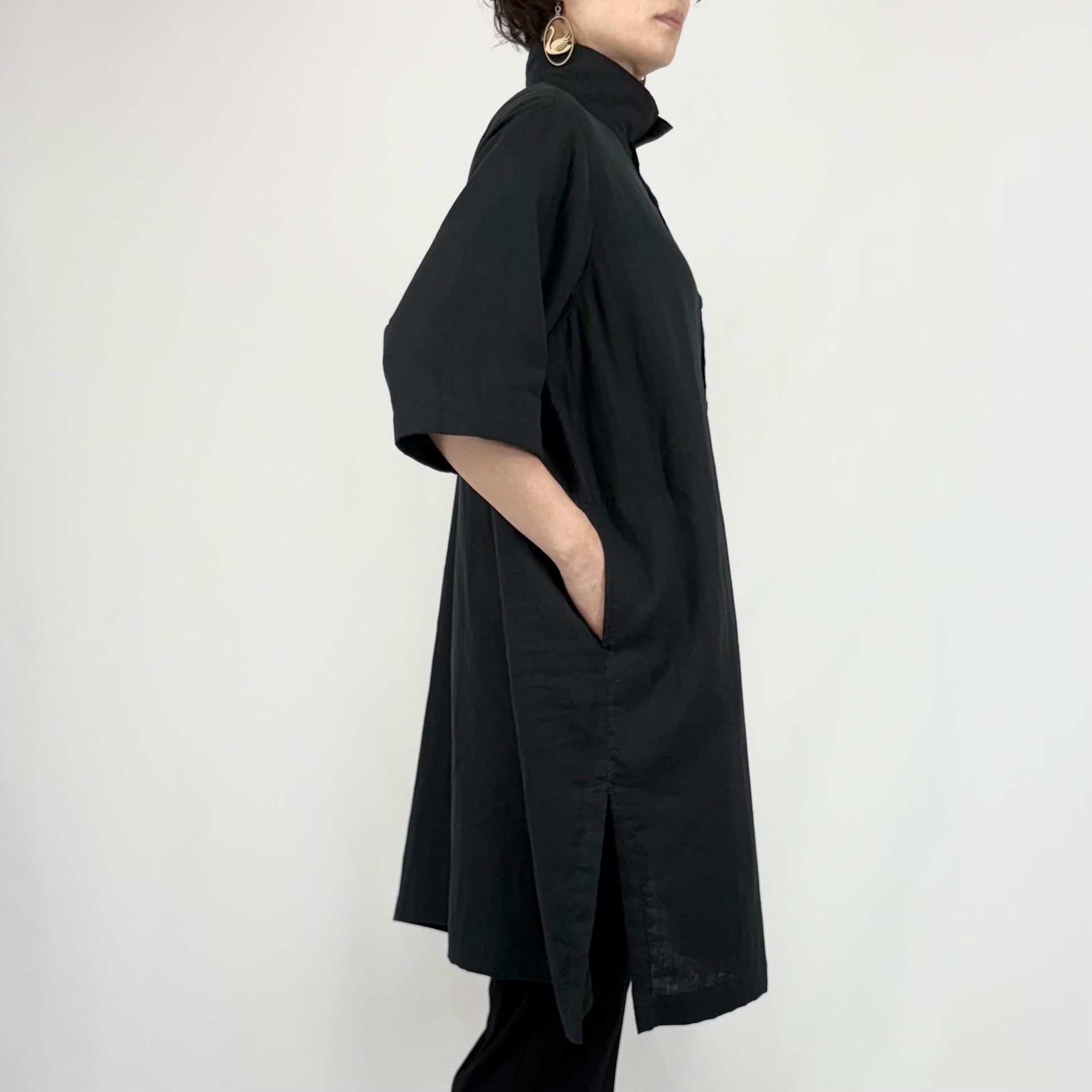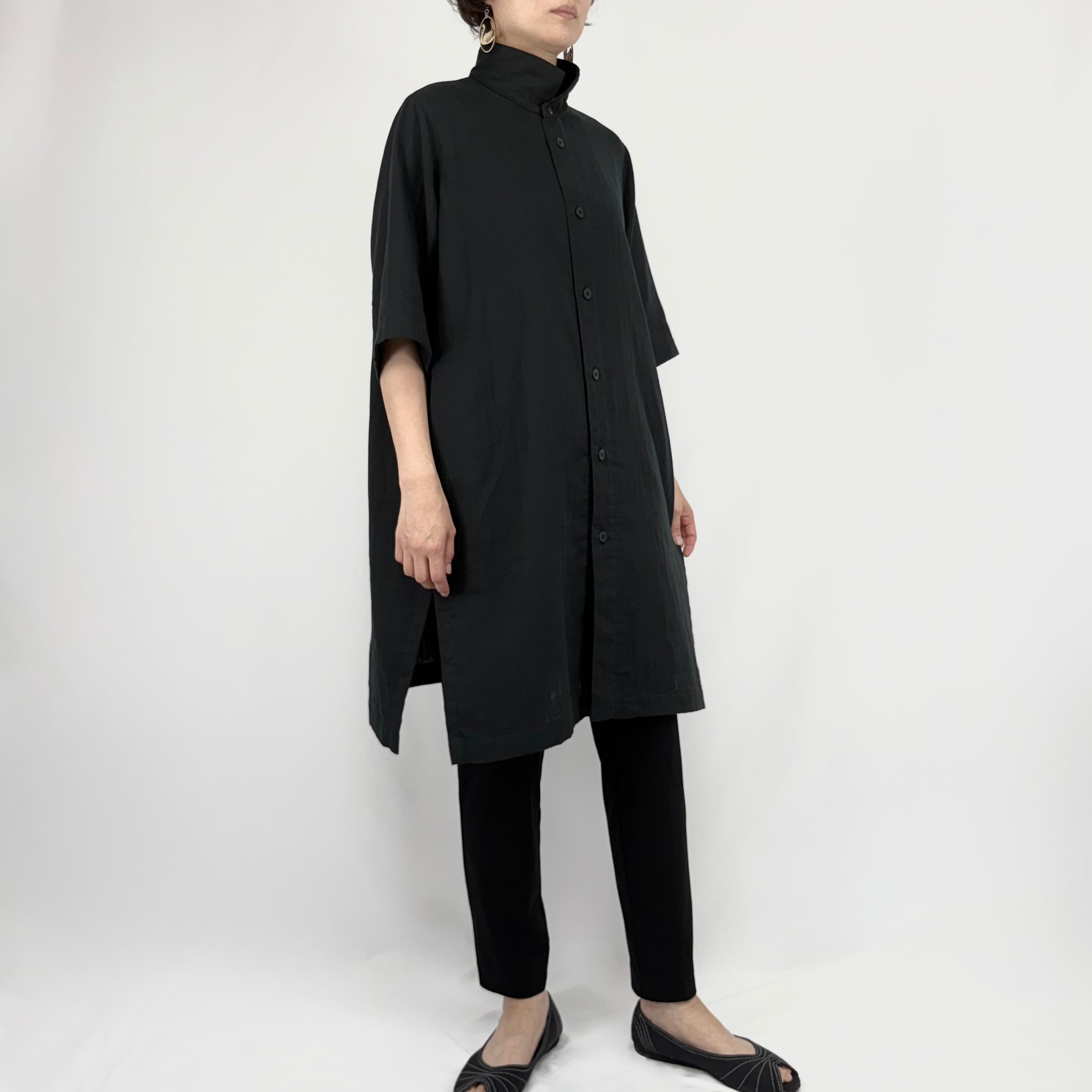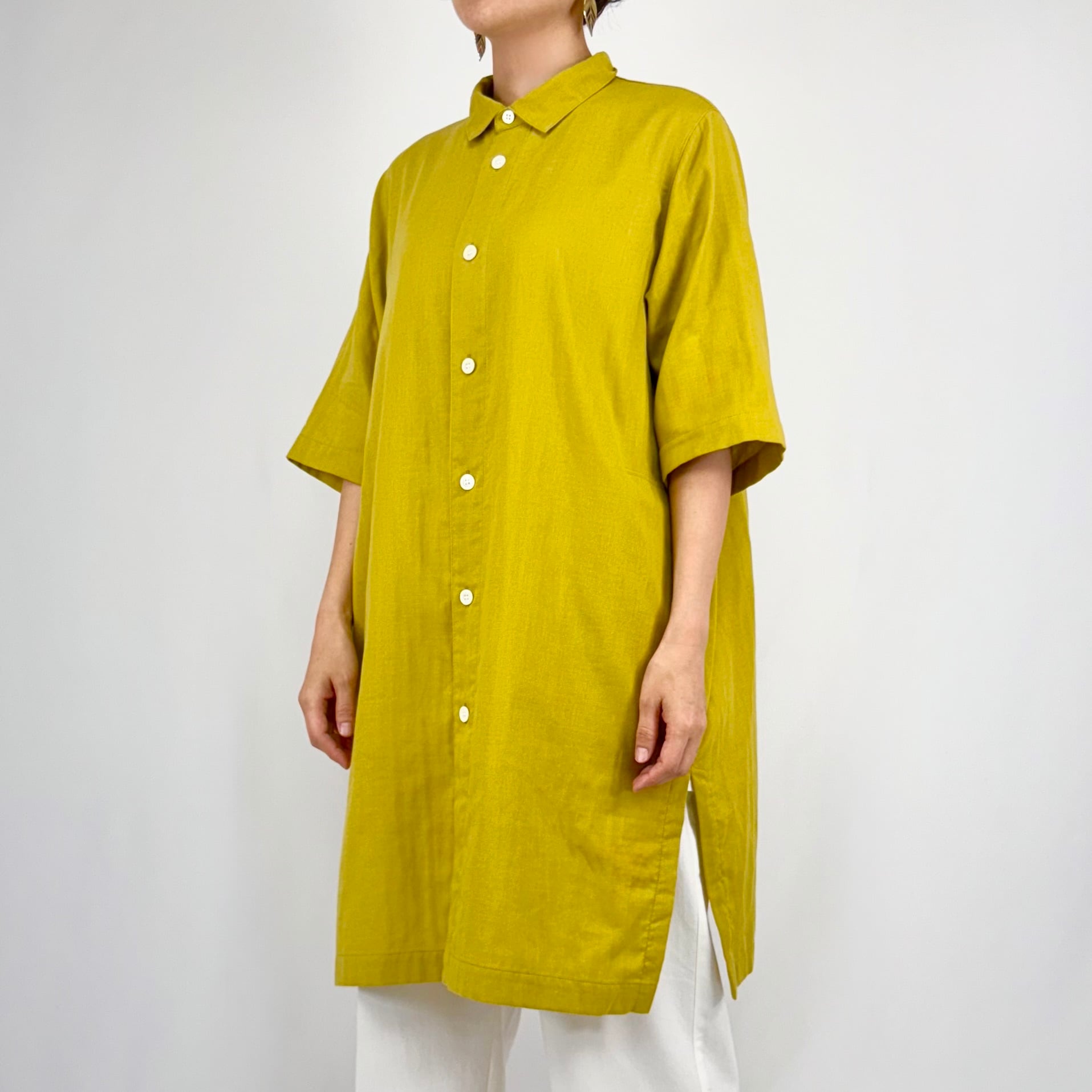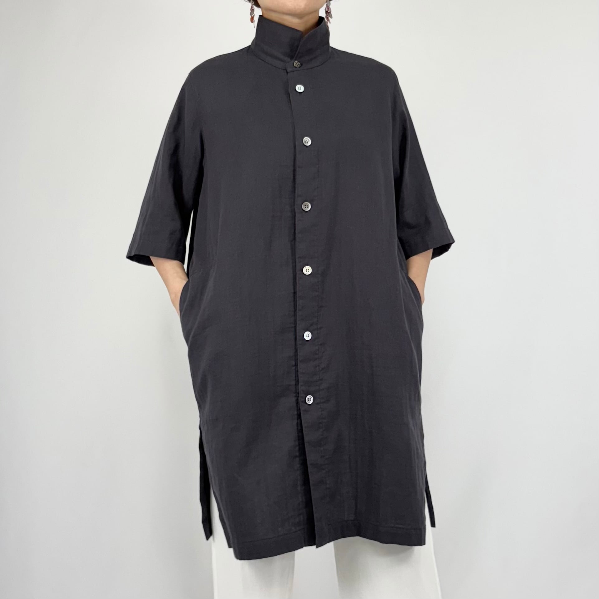 ライトダヴルガーゼ オアカラー六分袖チュニックシャツ