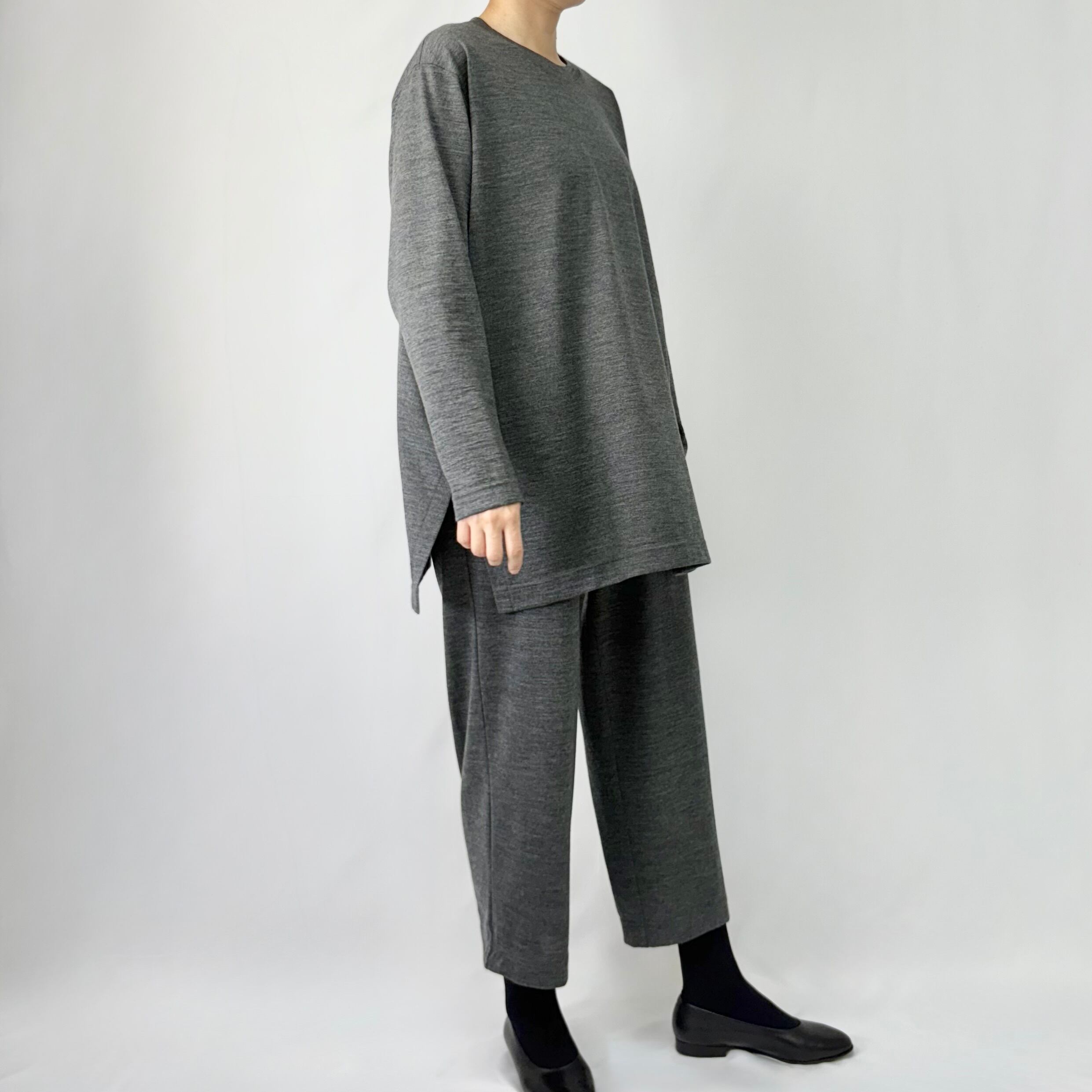 ウール100%でも毛羽の少ないクリアな表情、艶やかでなめらかな肌ざわりのジャージーです。