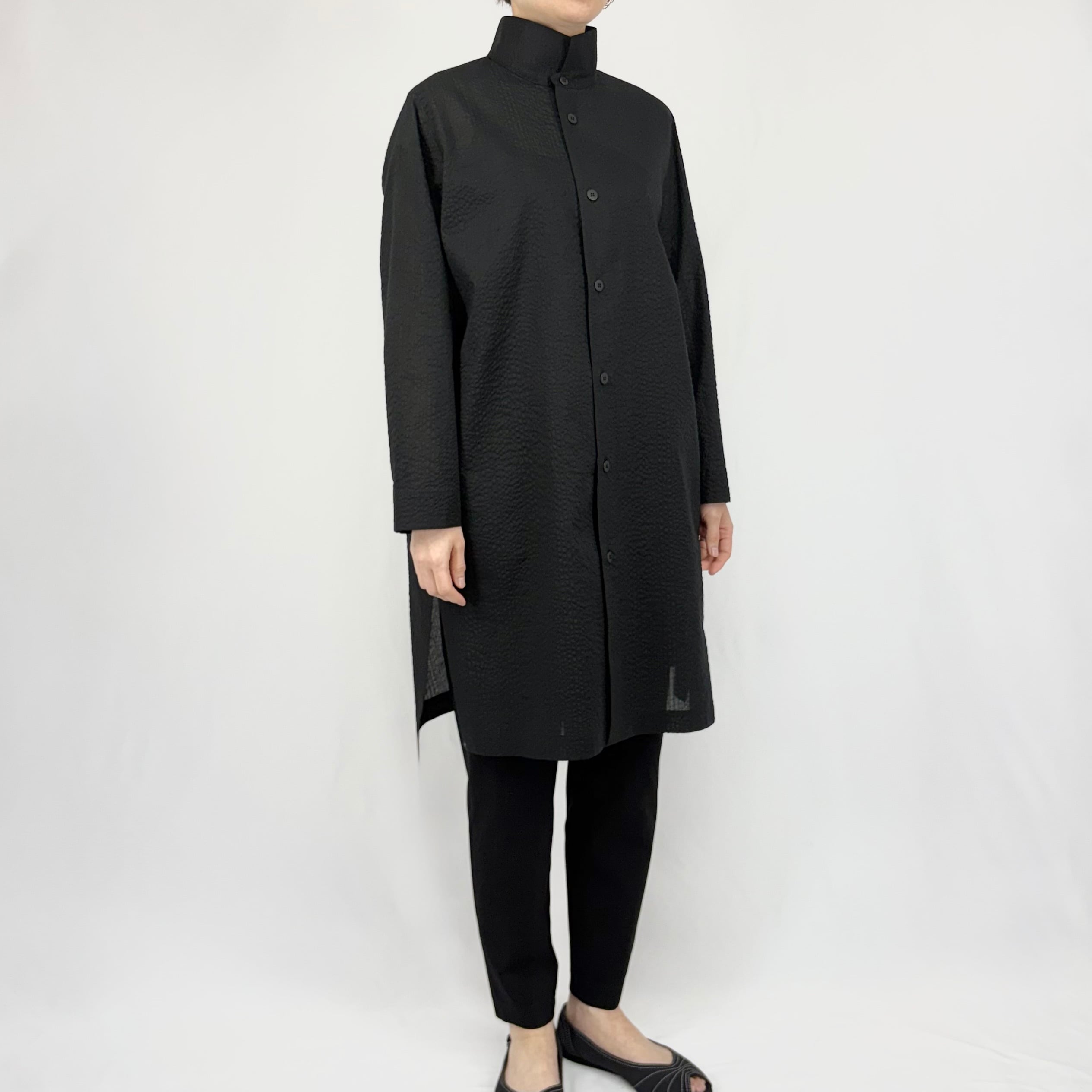 前ボタンを閉めてもカーデ替わりに羽織っても様になるので、季節問わず着用できます。