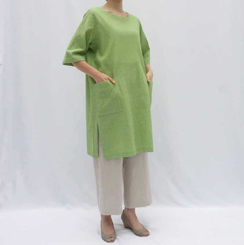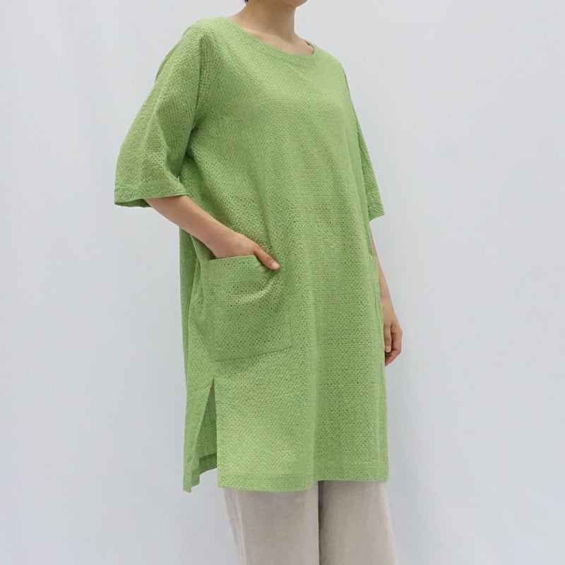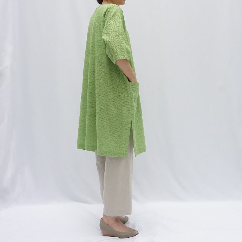 縫製後の製品洗いで出したナチュラルなシワが心地よい肌触り。