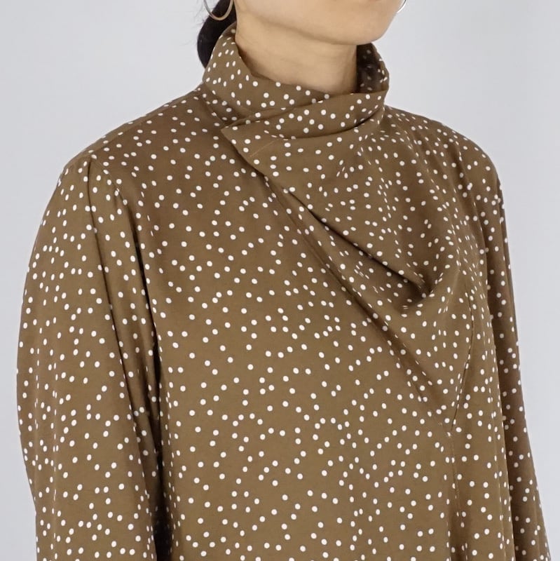胸元に入った三角形の切替で収まりの良いオフネック。