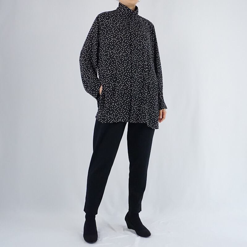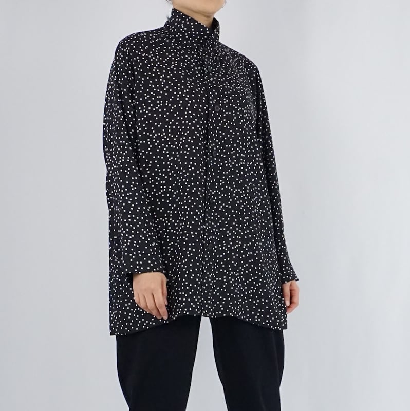 どんなボトムとも合わせやすい丈の長袖シャツです。