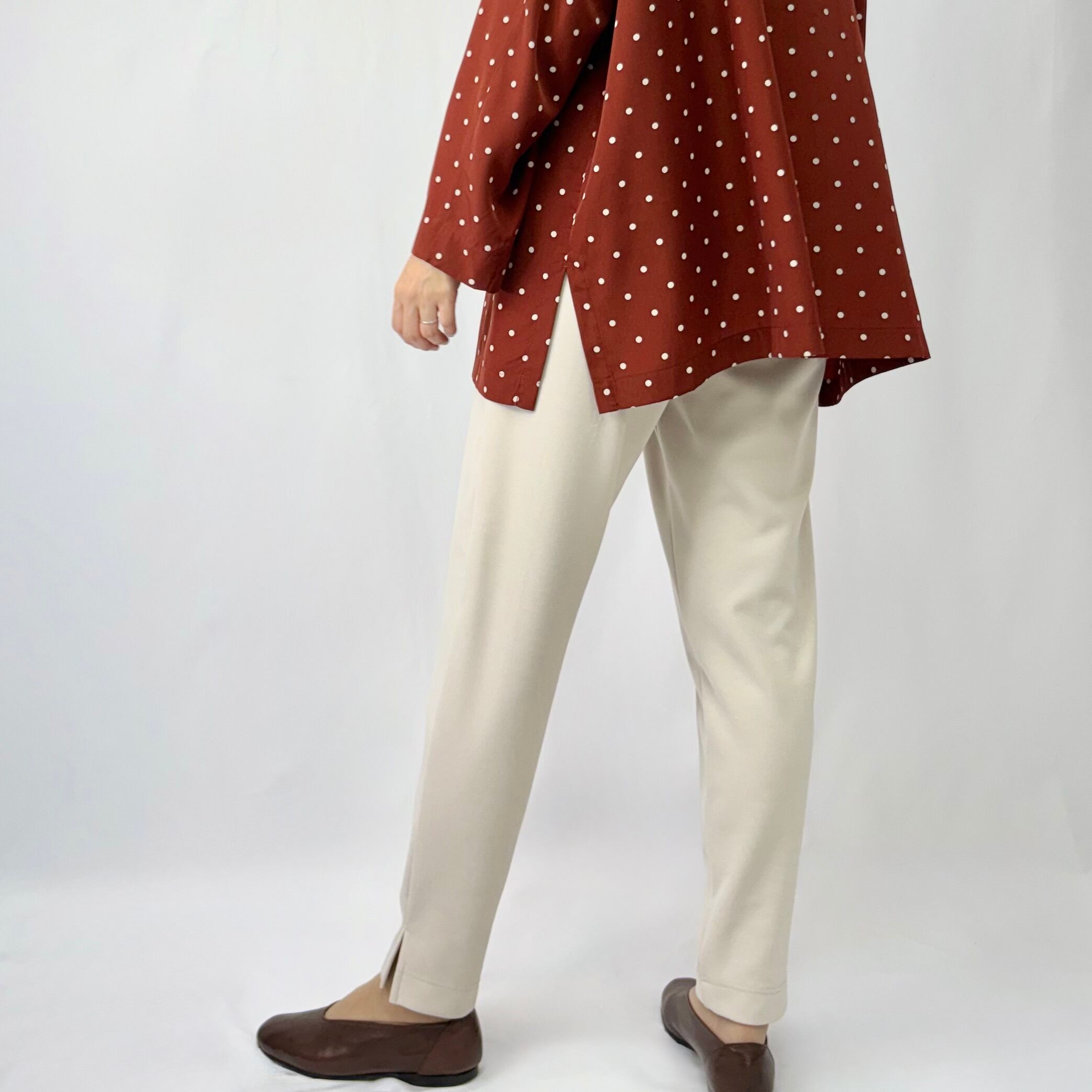 両脇スリットが余った裾を甲に流すので、小柄の方も足首でもたつかない嬉しい仕様です。