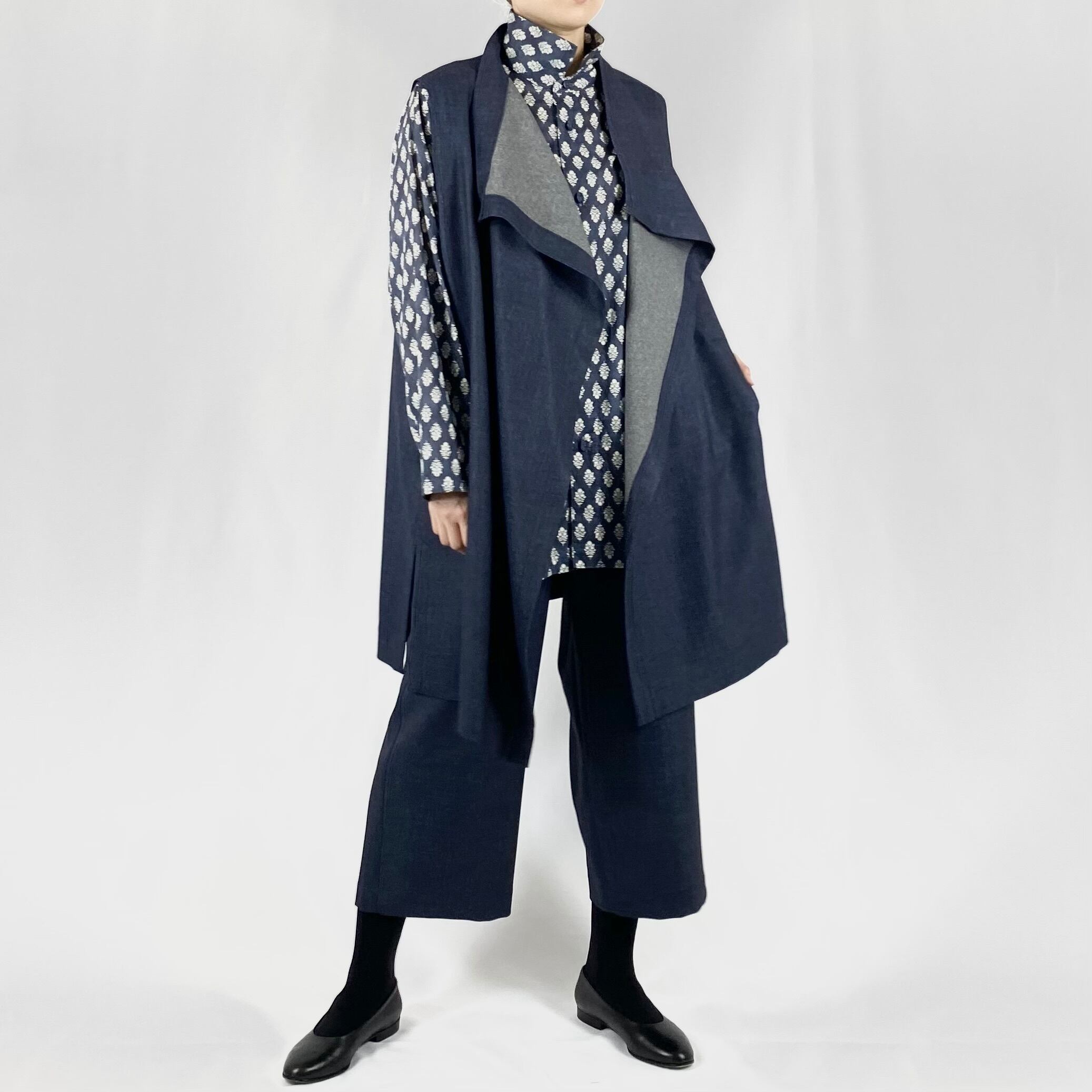 裏側はグレーで、着方によって見える表側とのコントラストがアクセントに。
