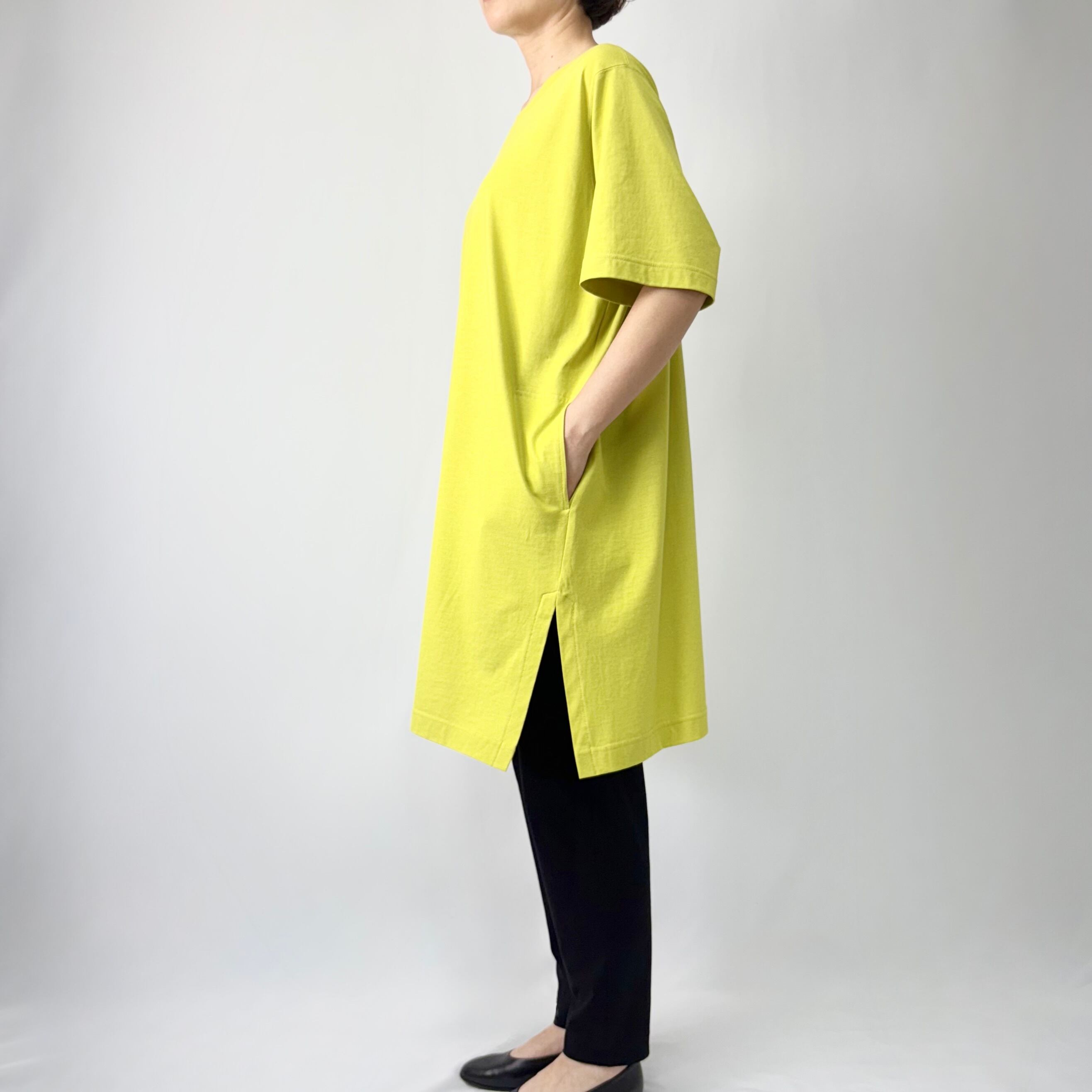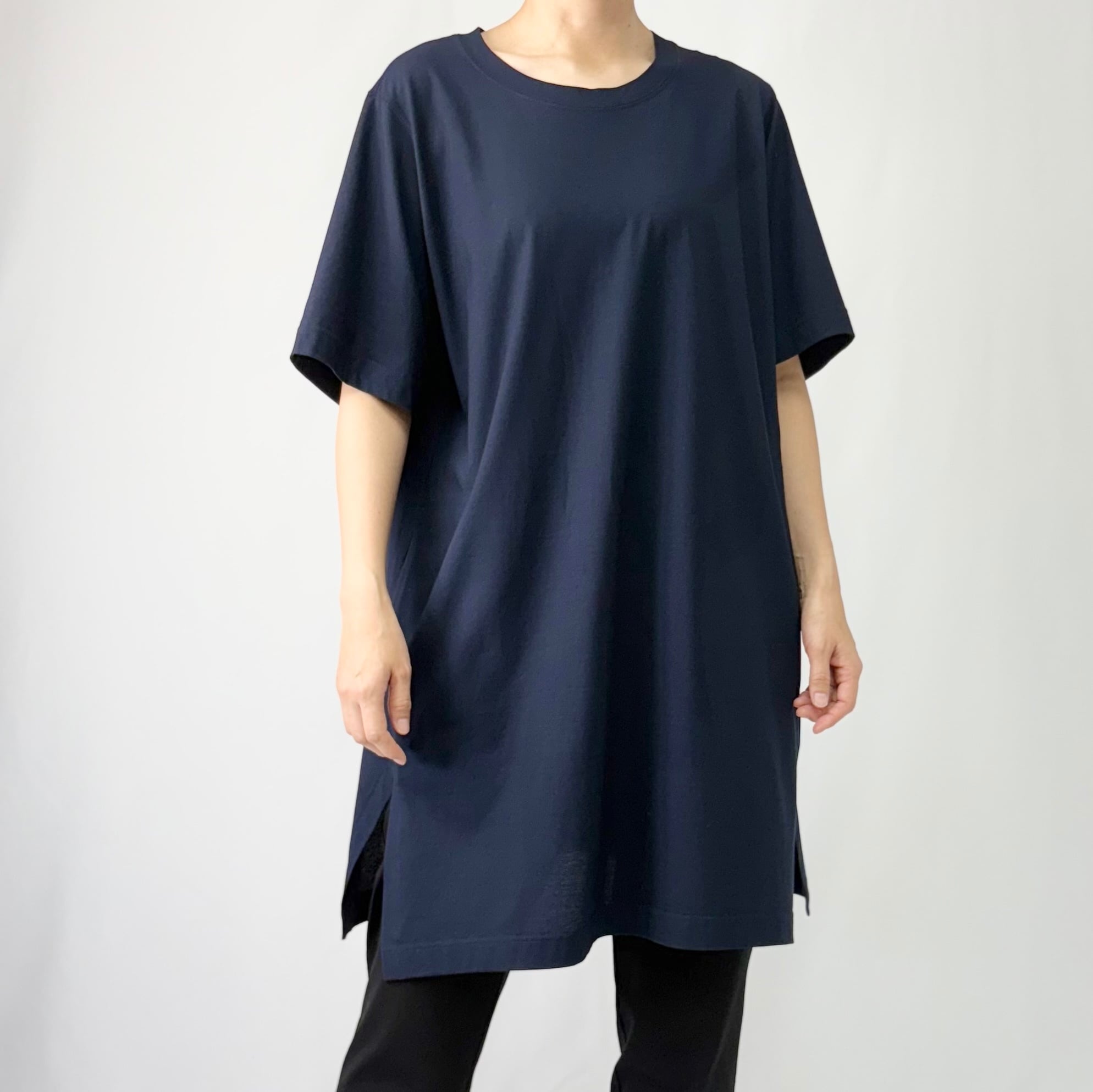 スカイ天竺 クルーネック半袖チュニックT