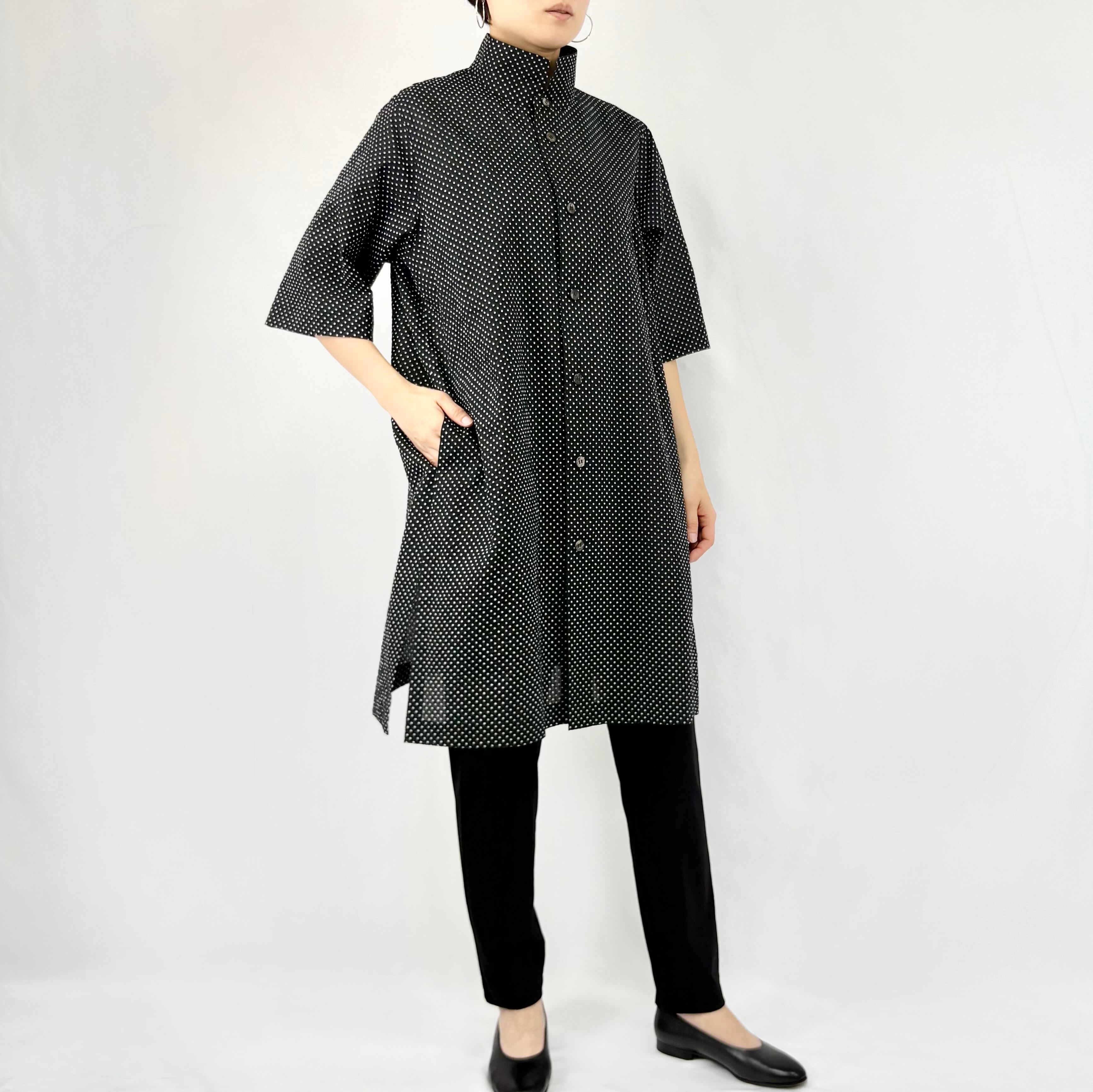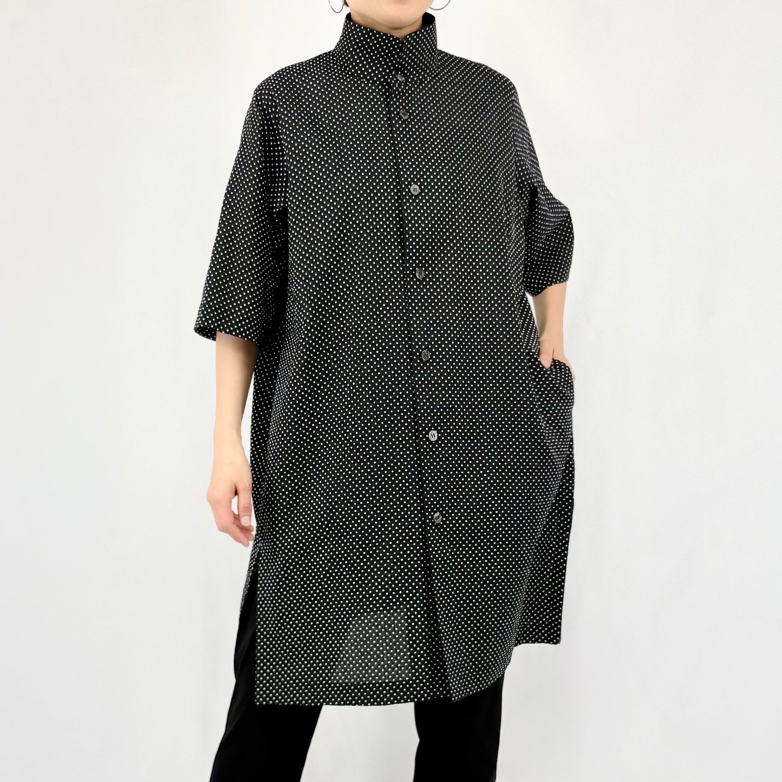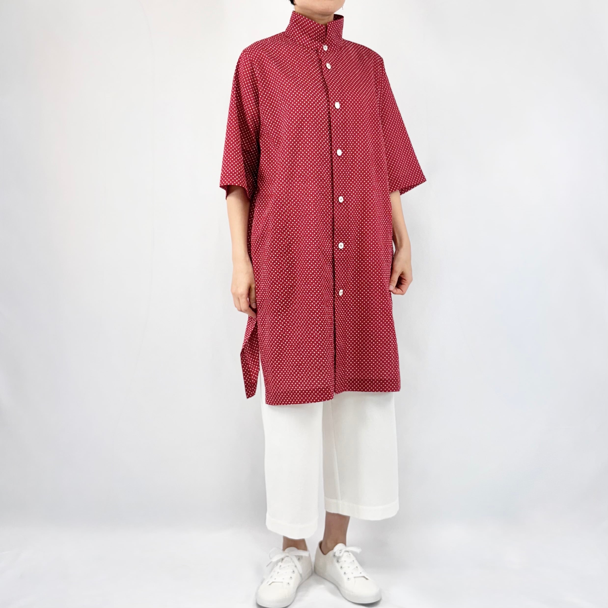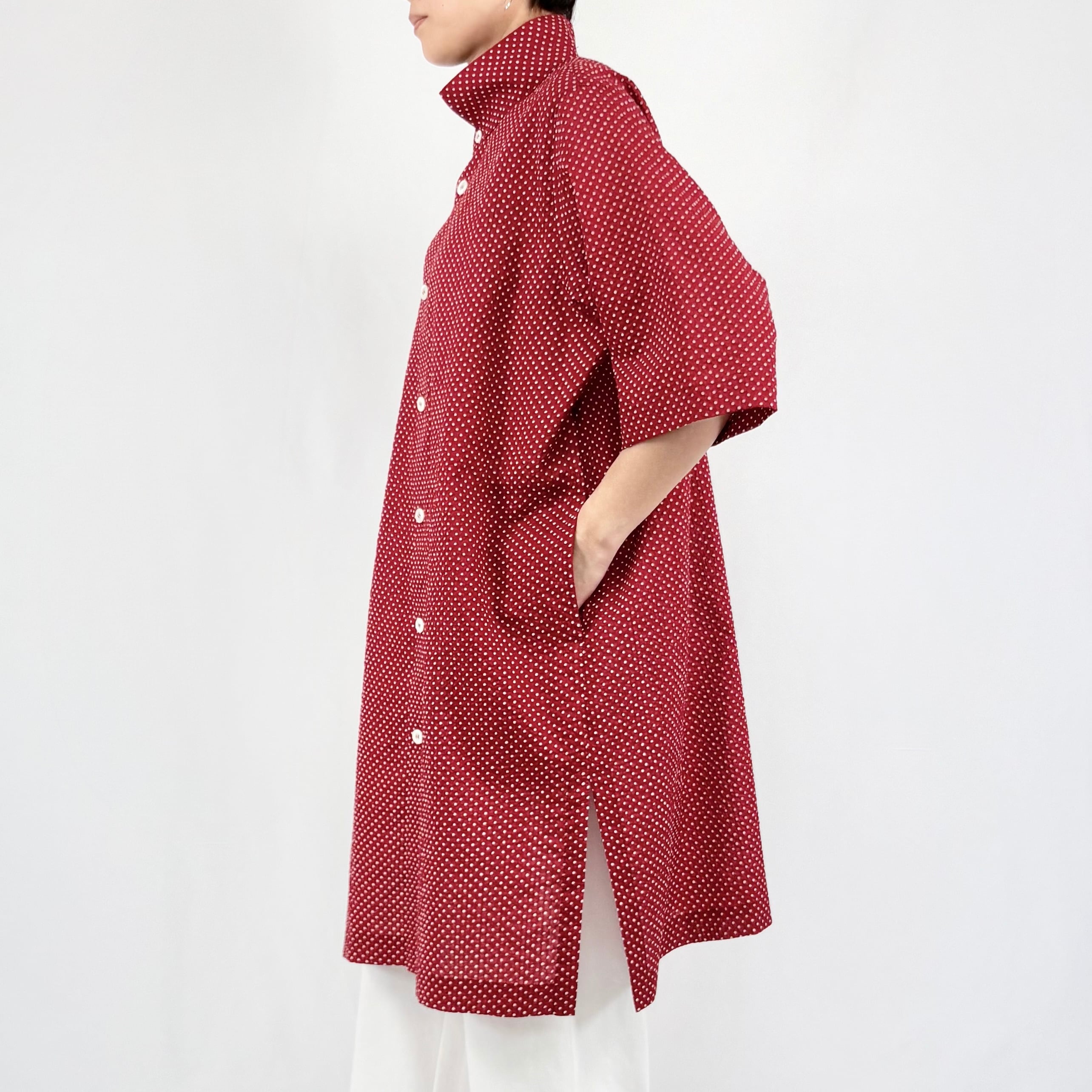 ミラクルワッシャー:水玉 オアカラー六分袖チュニックシャツ
